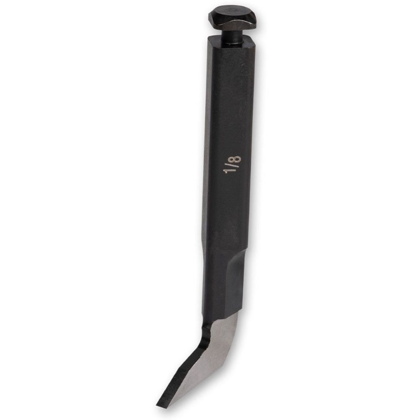 The narrow single-piece blades are available in five metric sizes (2mm, 3mm, 4mm, 5mm and 6mm) and five Imperial sizes (1/16", 3/32", 1/8", 3/16" and 1/4"). The 1/2" blades have a two-piece design and are available in two styles: straight and spear-point (for final smoothing). The 3/4" blade is straight and of a two-piece design. The blade sharpening jig is for use only with the 1/2" and 3/4" wide blades (jig is included with Veritas® planes). Sizes stated are nominal.