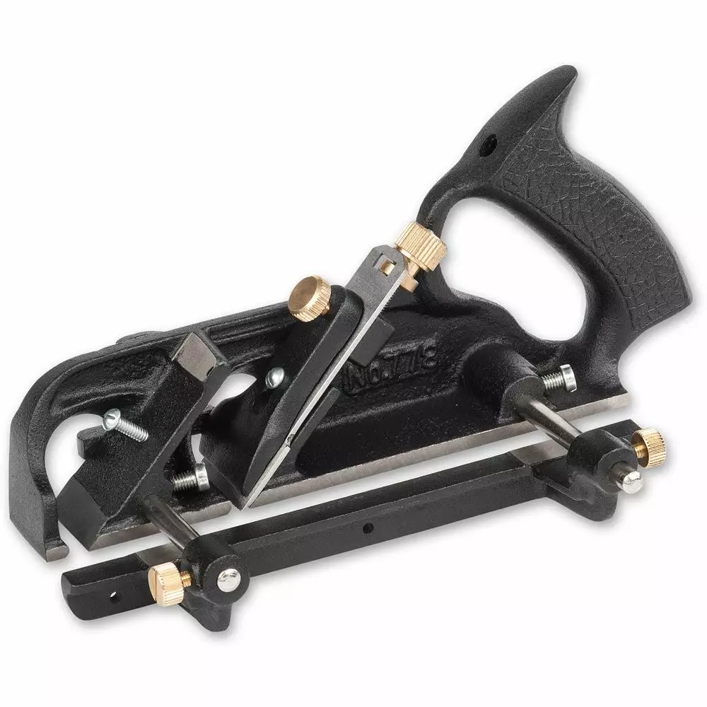 Höylässä on laadukas valurautarunko tarkasti hiotulla pohjalla. Täysleveää terää voidaan käyttää kahdessa asennossa; normaali tai etuasento puskuunhöyläyksiä varten. Leikkaussyvyys säädetään kierteitetyllä mikrosäätimellä. Leikkuuterä poikkisyin työstämistä varten ja syvyysrajoitin täydentävät höylän.