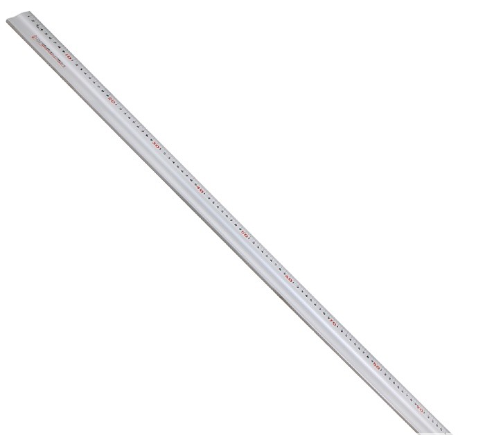 Rigid aluminium cutting rule with hardened steel edge for protection against wear. Deep-etched mm scale, rubber pad. Length 1000 mm, width 56 mm
