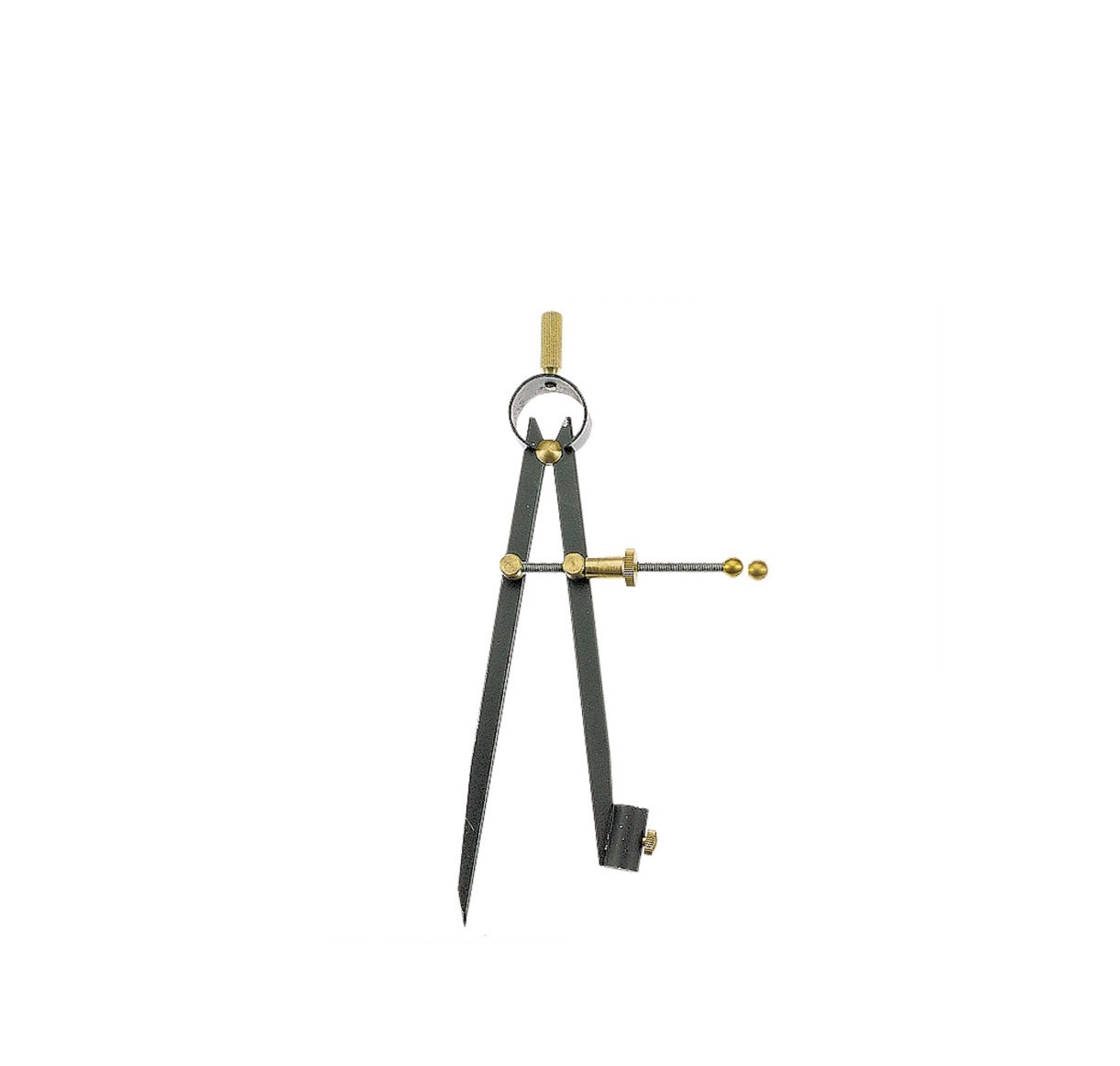Elegant French compasses made of gunmetal finished steel, with hardened points, quick-acting screws.Shaft length 150 mm, opening 160 mm
