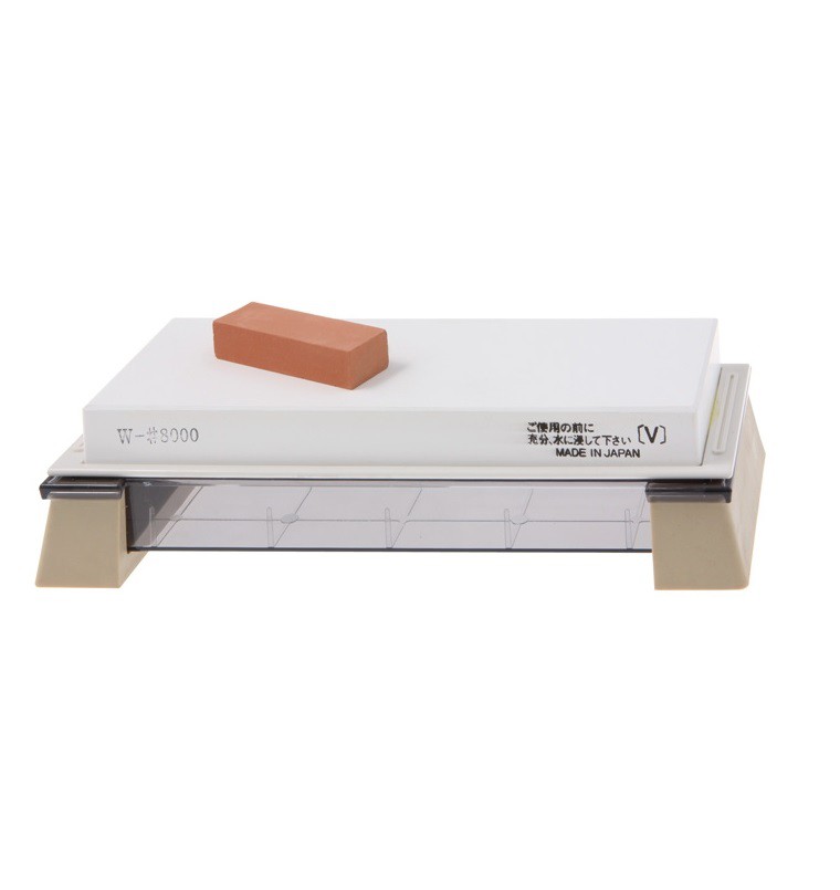 Fine-grit waterstones for removing burr, polishing and honing. Comes with Nagura stone.206 x 73 x 23 mm, with base