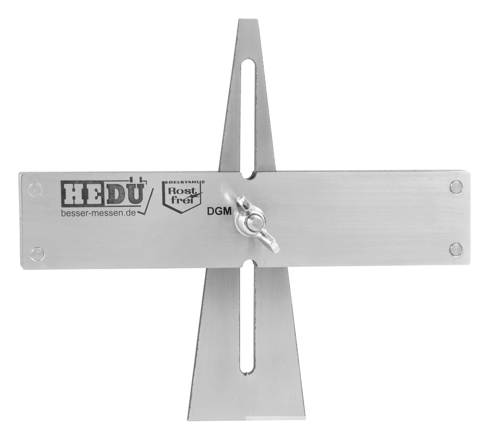 Lohenpyrstöliitosten merkintään, suhde 1:8. Säädettävä leveys (6–40 mm) ja kulma, ruostumatonta terästä.