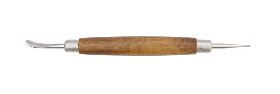 For modelling reliefs as well as stamped borders and patterns on leather. With the spoon tip, you can smooth irregularities on the surface, while the ball tip allows fine details and lines as well as rebates. Ball tip Ø 1.4 mm, spoon width 6.3 mm. Overall length 170 mm