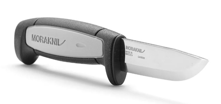 Allround knife with double-moulded extra large ergonomically designed handle. High friction grip. Blade 3,2mm thick carbonsteel.