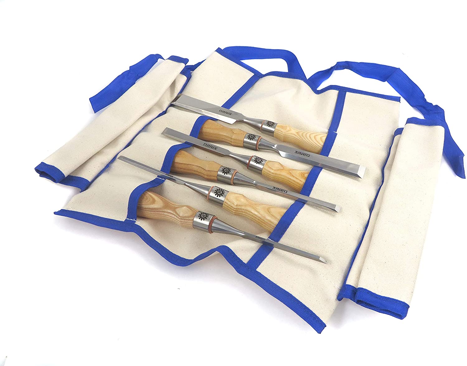 Narexin 6-osainen Richter CRYO -talttasarja (1/8", 1/4", 3/8", 1/2", 3/4" ja 1") yhdeksän taskun kankaisessa työkalurullassa. Leveydet millimetreinä 3, 6, 10, 13, 19 ja 25 mm.