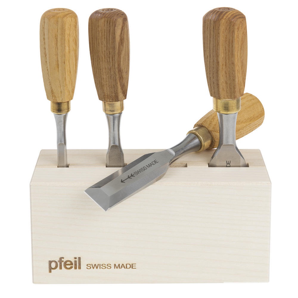 Nämä kompaktit kromi/vanadiiniteräksestä (60 HRC) valmistetut taltat mahdollistavat työskentelyn erittäin tarkasti ja tarkasti työkappaleen parissa. Siksi ne sopivat ihanteellisesti liitosten sekä hienojen puusaumojen puhdistukseen ja kaikenlaisiin yksityiskohtiin. Niitä voidaan käyttää myös kuvanveistossa. Saarnesta valmistetut lyhyet kahvat messinkiholkilla, käsin kiillotetut terät ja vaahterapuinen säilytystukki tekevät tästä setistä todellisen katseenvangitsijan. Ihanteellinen lahja ihmisille, jotka rakastavat puuta.