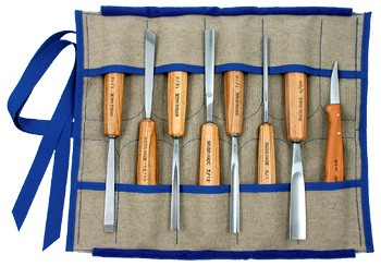 Koot: 1 (tasainen) / 12 mm; 1 S (tasainen/vino) / 12 mm; 4 / 20 mm; 5 / 12 mm; 7 / 10 mm; 9 / 4 mm; V-työkalu 8 mm; lovileikkausveitsi 12.