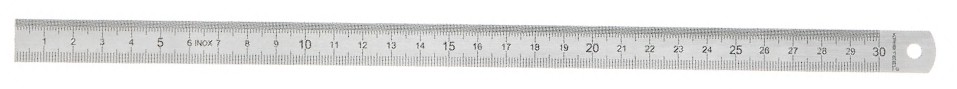 Precision RulesHighly wear-resistant rule made of hardchrome-plated stainless steel. Hardened with milled edges. Matt finish and deep-etched mm scale. Thickness 0,5 mm, width 15 mm.