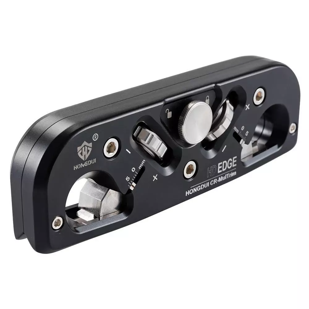 Tämä on ainoa reunaviistehöylä, jossa on kaksi erilaista, säädettävää kovametalliterää. Ne mahdollistavat jopa 6 mm leveiden tasaisten viisteiden ja 4 mm säteisten kaarevien reunaviisteiden työstämisen 90° reunoihin. Kummassakin terässä on kaksi suoraa leikkuureunaa ja kaksi uraa, ja ne on nopea ja helppo vaihtaa. Kiinteästä alumiinista ja ruostumattomasta teräksestä valmistetut tarkkuusjyrsityt komponentit tekevät höylästä miellyttävän pitää kädessä.