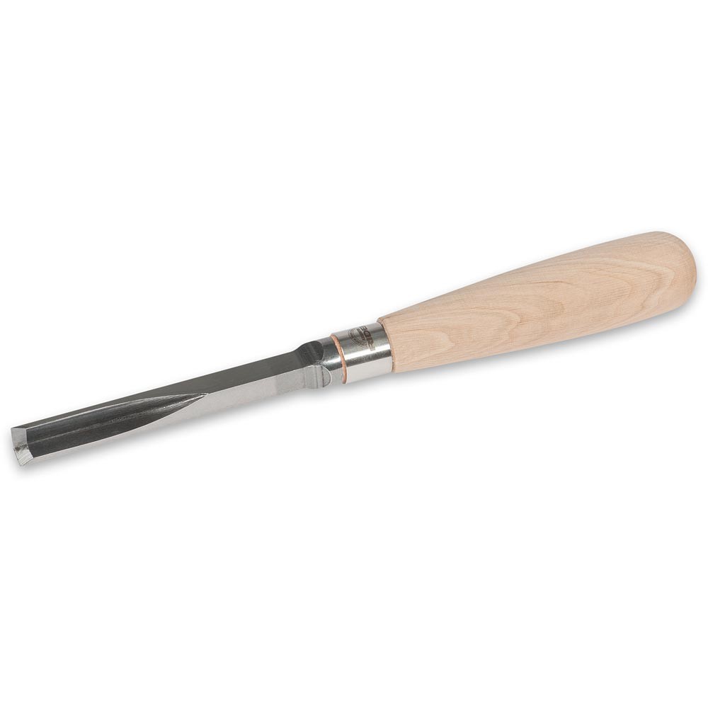 Trimming and final squaring is still the function of the corner chisel. The Rider Corner Chisel has a 10mm square blade with a forged tang and bolster. CNC milling ensures forming of the corner is perfectly accurate. Hardened and tempered with a ground bevel, guarantees a 90° cutting angle. Use the Rider corner chisel to clean the corners of mortices and to trim hinge recesses after using a router. It is useful as a marking out tool, a light tap provides a square cut as a guide for joint corners. When it comes to sharpening and honing, use a square-edged slipstone or, easier still, a diamond hone that allows you to get right into the corner.