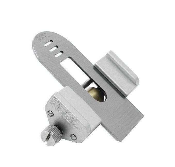 The blade is centrally held in one of the two grooves in the vice-like aluminium jaws. The 26 mm wide roller precisely maintains the angle of 90° without tilting. Max. blade width 82 mm Max. blade... Lue lisää