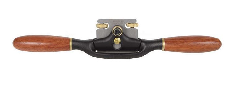 For fine shavings when working on flat and long curved surfaces such as bows, boats, slats, planks and edges. Because they are guided by hand and are sensitive to the wood structure, spokeshaves must have hefty bodies and thick cutting blades (3.2 mm). The blade can be adjusted with knurled screws, the mouth opening with supplied shims. The radius of the round version is 44 mm, while the concave version has an inside radius of 33 mm.
