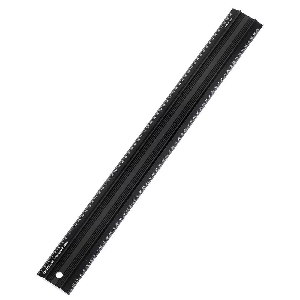 Kestävä merkintäviivain, joka on valmistettu massiivisesta puristetusta alumiiniprofiilista. Ihanteellinen mittaamiseen konepöydällä, sisämittojen merkitsemiseen tai asettelutehtäviin. Viistot reunat estävät parallaksivirheitä, joita voi esiintyä merkkauksessa. Asteikko millimetreissä molemmilla puolilla. Nollakohta viivaimen päässä.