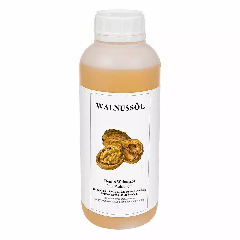 Valmistettu 100 % kalifornialaisista saksanpähkinöistä. Tämä on ainoa pähkinäöljy, joka sopii maalaamiseen ja pinnan suojaamiseen. Muuntyyppisistä pähkinöistä saadaan kuivumattomia öljyjä. Sekä kemialliselta rakenteeltaan että ominaisuuksiltaan saksanpähkinäöljy on pellavaöljyn ja unikonsiemenöljyn välissä, mutta hieman lähempänä jälkimmäistä. Tämä koskee myös sen ainoaa vaaleaa väritystä.