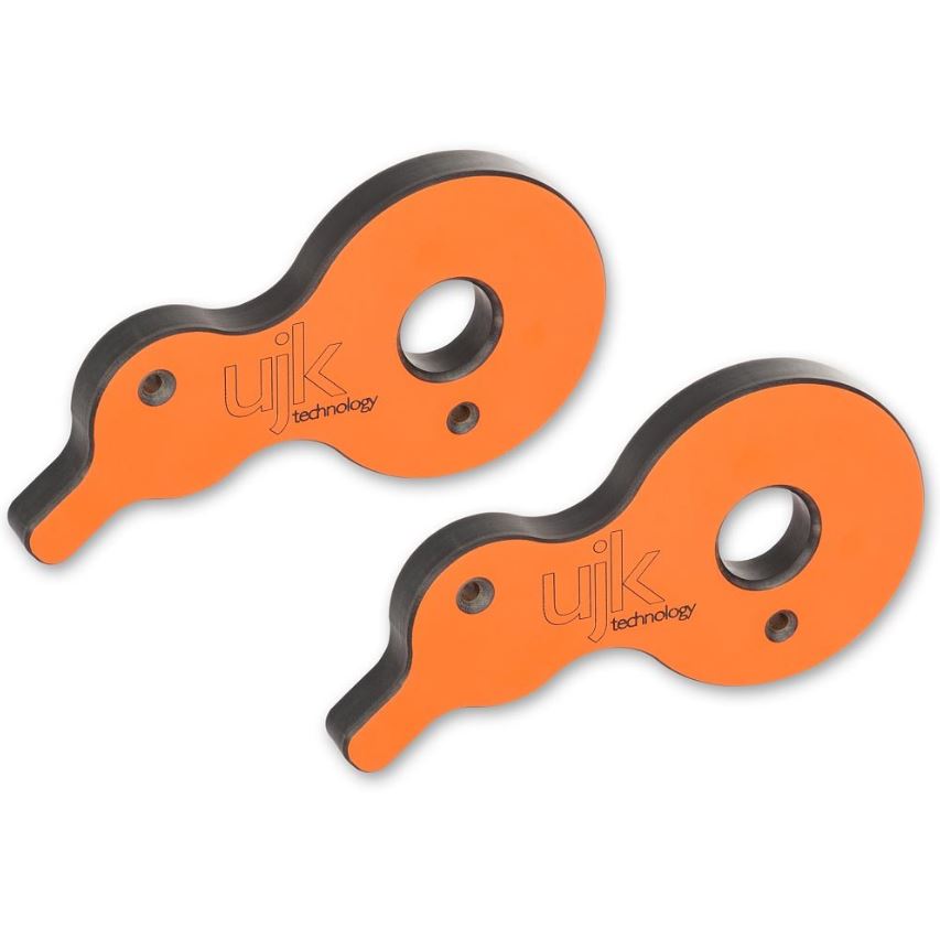 Designed originally for use on a multifunction table with 20mm dog holes, there is no reason why you cannot use them on any bench with the correct size dog hole. The UJK Guide Pups with their low profile are the ideal companions. The design of these cam clamps solves the problem of holding an item on a flat surface using only side pressure.