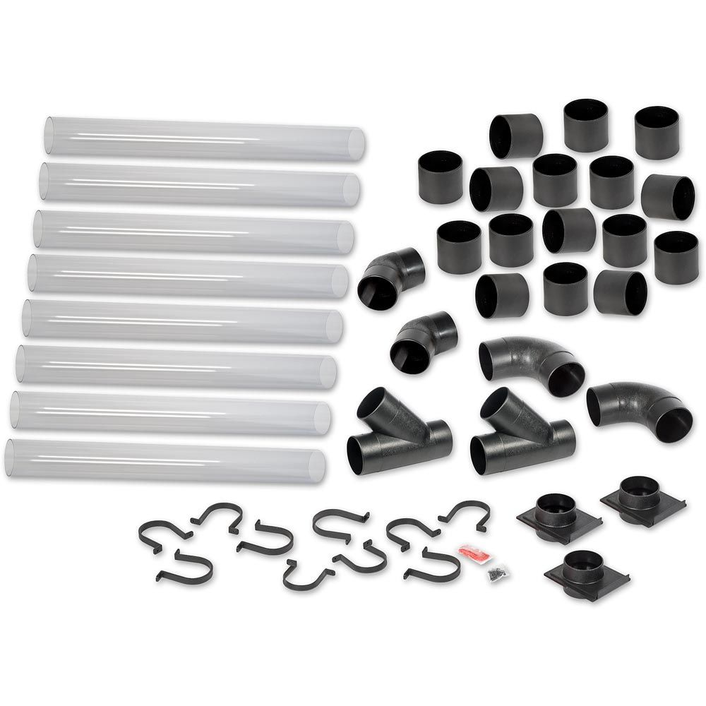 100 mm:n kanavasarja, joka sisältää useimmat kodin puutyöntekijän tarvitsemat tavarat jopa kolmen koneen liittämiseksi puruimuriin. Sisältää 8 x 910 mm pituista 100 mm kirkasta muovikanavaa, 2 x Y-liitoskohtaa, 2 x 90 asteen kulmaa, 2 x 45 asteen kulmaa, 3 x sulkuporttia ja 16 x liittimiä. Mukana tulee 10 seinäkiinnikkeen pakkaus ruuveineen ja seinäpistokkeineen. Kaikki tuotteet ovat saatavilla erikseen, joten voit rakentaa järjestelmän juuri sellaisena kuin tarvitset. Muut lisävarusteemme, kuten 990053 Y-liitos, 500181 laipallinen tappi ja 200114 Big Mouth Dust Hood, sopivat kaikki tähän sarjaan. Maadoitussarja 510412 kannattaa harkita suojataksesi itsesi mahdolliselta staattisen sähkön kertymiseltä. Tämä sarja on juuri sitä, mitä kotityöpaja vaatii.