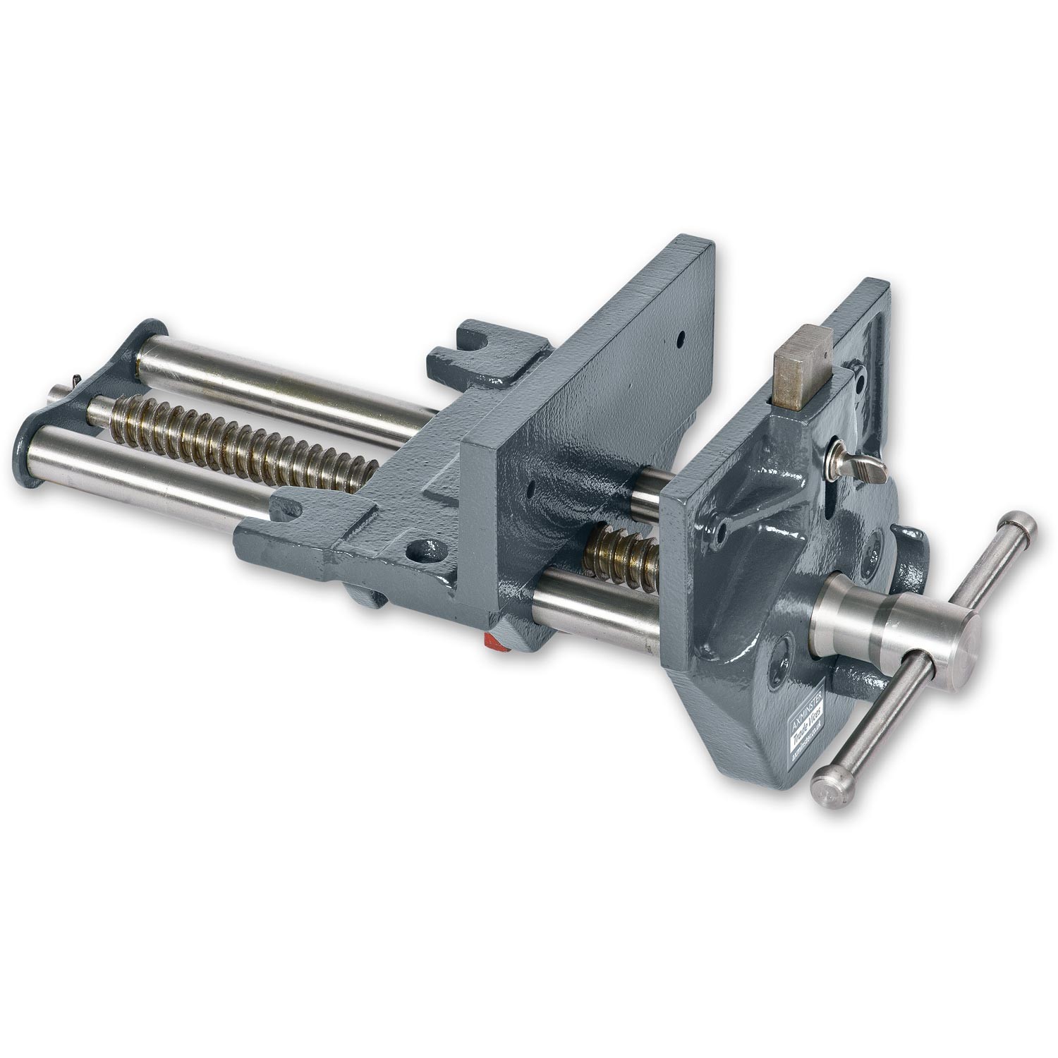 Perinteinen penkkipuristin, mutta nyt varustettu pikavapautuksella jolla liikkuva leuka nopeasti siirtyy oikeaan kohtaan. Leuoissa olevien reikien avulla puisen leukasuojan voi helposti kiinnittää. Etuleuassa on penkkihaka jota voi nostaa ylös ja lukita paikalleen mahdollistaen kappaleen kiinnittämisen myös työpöydän levyn päällä. Näiden penkkipuristimien avulla pöydästäsi tulee ammattilaisen pöytä ja työt helpottuvat merkittävästi.