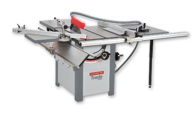 The standard saw has a steel right hand side support table included, this gives 650mm cut to the fence, allowing full sized boards to be cut lengthways. A pressed steel feed-off table is also supplied. Dust extraction is provided on both the crown guard and under the blade for efficient dust control, a 1,000m³/hr extractor is recommended. A side access door is fitted to give easy access for maintenance. Supplied with an Axcaliber 60T TCT general purpose blade. Please note: a 16amp supply will be required. This machine is compact in size but ready for work in the home or light trade workshop.