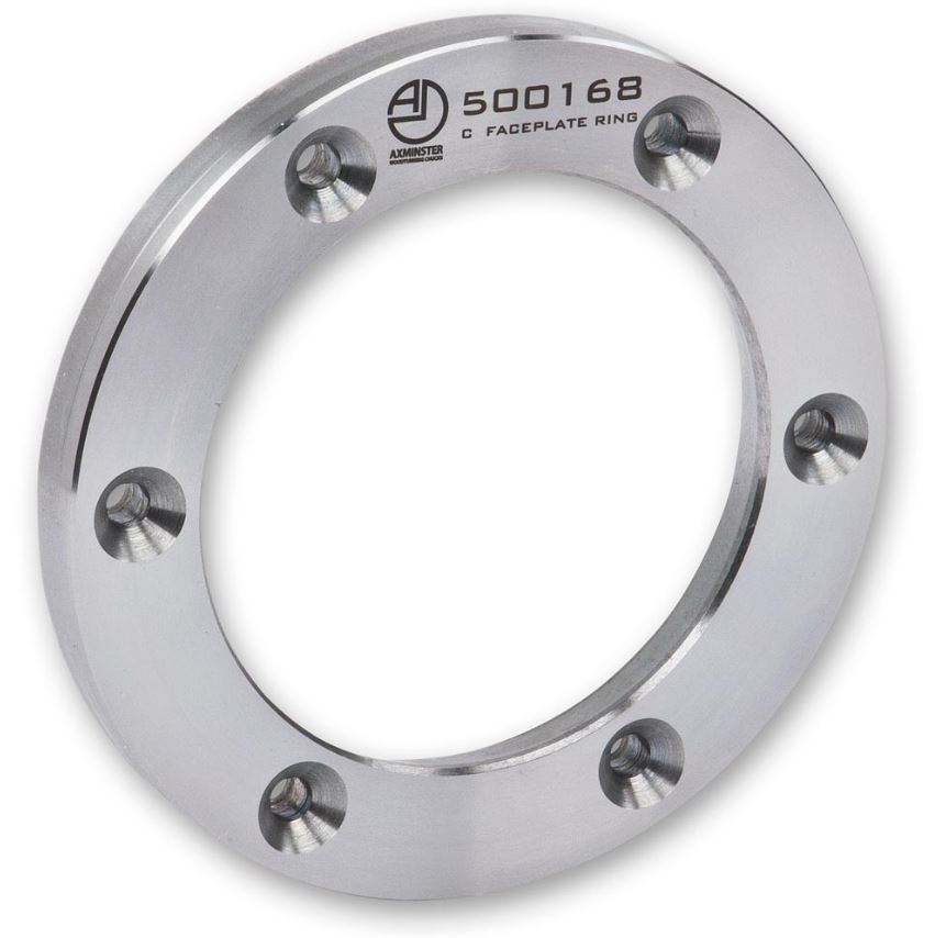 Made to match the A, B, C and F dovetail jaws, these rings do away with the need for a separate faceplate on which to mount a bowl blank prior to turning the outside. Simply screw the ring to the chosen blank with woodscrews and expand the dovetail jaws into the recess in the centre of the ring