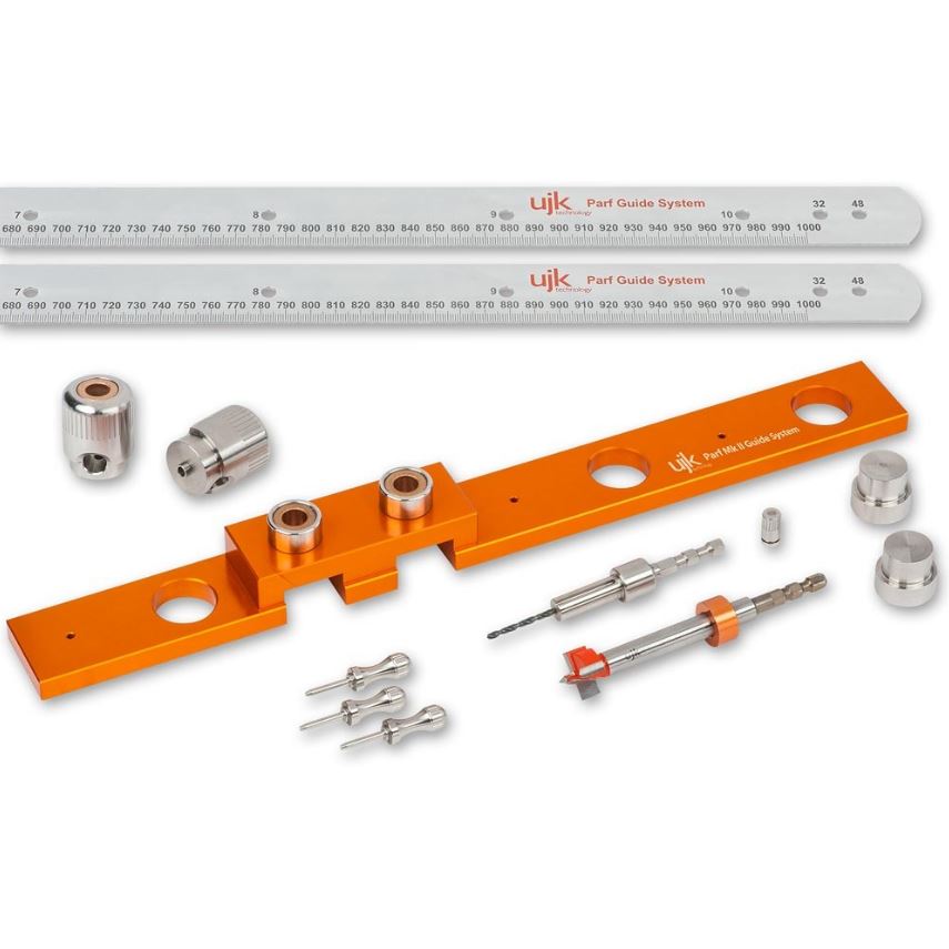 Täydellinen Parf Mk II -ohjainjärjestelmä sisältää kaksi 1 m pitkää Mk II -parfustikkua, joissa on reiät 96 mm:n välein niiden pituudella; kaksi Mk II -porausohjainta, yhden 3 mm:n Mk II -poranterän ja kolme Mk II -ohjaintappia. Mukana on myös ohjainlohko, pari UJK Technologyn matalaprofiilisia penkkihakoja ja erityinen 20 mm:n TC-poranterä 3 mm:n keskiohjaimella.