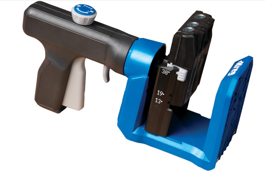 - Simple setup with easy-set drill bit and pre-set material thickness settings