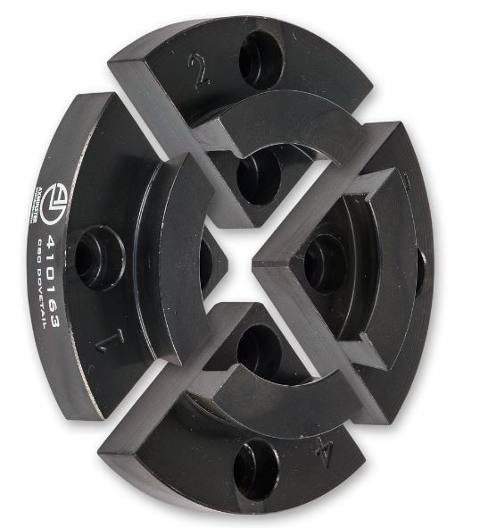 A perfect match for the SK80 chuck these popular C jaws feature three separate gripping methods. An external dovetail which opens into a 50mm recess, a 40mm internal diameter stepped shoulder for a firm grip on the outside of a spigot. A screw chuck can be purchased separately for use with these jaws. Recommended range: 35-55mm internal, 50-70mm external. Although designed to fit the 80mm chucks these jaws will also fit the 100mm versions.
