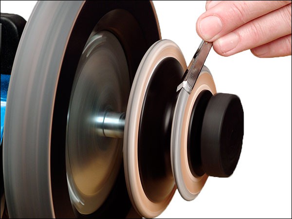Saat siihen vaihdettavia nahkalaikkoja. Kourutalttojen ja V-talttojen sisäreunan viimeistelyyn ja kiillotukseen. Asennetaan normaalin nahkalaikan ulkosyrjälle.