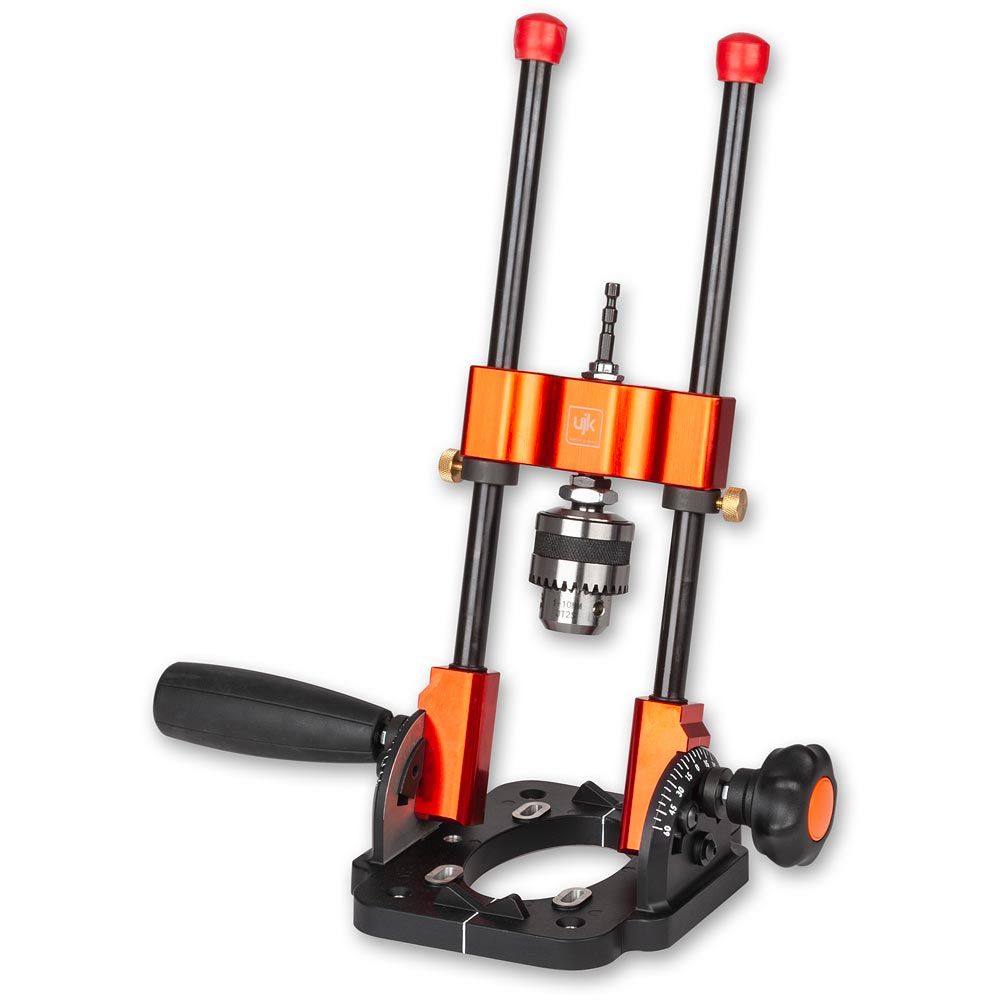 UJK-poraohjain on tukeva ja tarjoaa paljon joustavuutta. Poraistukan pohjasta jalustan alapintaan on 230 mm. Suurin liike 210 mm. Kaksi istukan ohjaimessa olevaa tappia, jotka ruuvataan jalustaan, mahdollistavat itsekeskittävä porauksen, esimerkiksi asennettaessa lukkopesää oveen. Käytettäessä itsekeskittyviä tappeja kapasiteetti on 85 mm. Saatavilla lisävarusteena 13 mm:n istukka ja keskitysruuvipuristin.