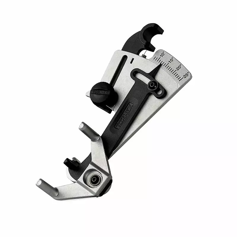 KS-123 veitsikulman asettimella voit asettaa tarkan teroituskulman käytännössä mille tahansa veitselle. Kolmessa helpossa vaiheessa tämä patentoitu ja hienostunut ratkaisu mahdollistaa tarkan kulman asettamisen myös veitsissä, joissa on kapeneva terä. Se on itsesäätyvä hiomalaikan halkaisijan mukaan ja sopii kaikkiin Tormek-koneisiin, joissa on yleistuki. Laskelmat oikean kulman saamiseksi perustuvat tarkkoihin geometrisiin mittoihin, joten tämä analoginen kulman asetin on aina oikea. Teroituskulman asettaminen veitselle ei ole koskaan ollut helpompaa ja tarkempaa!