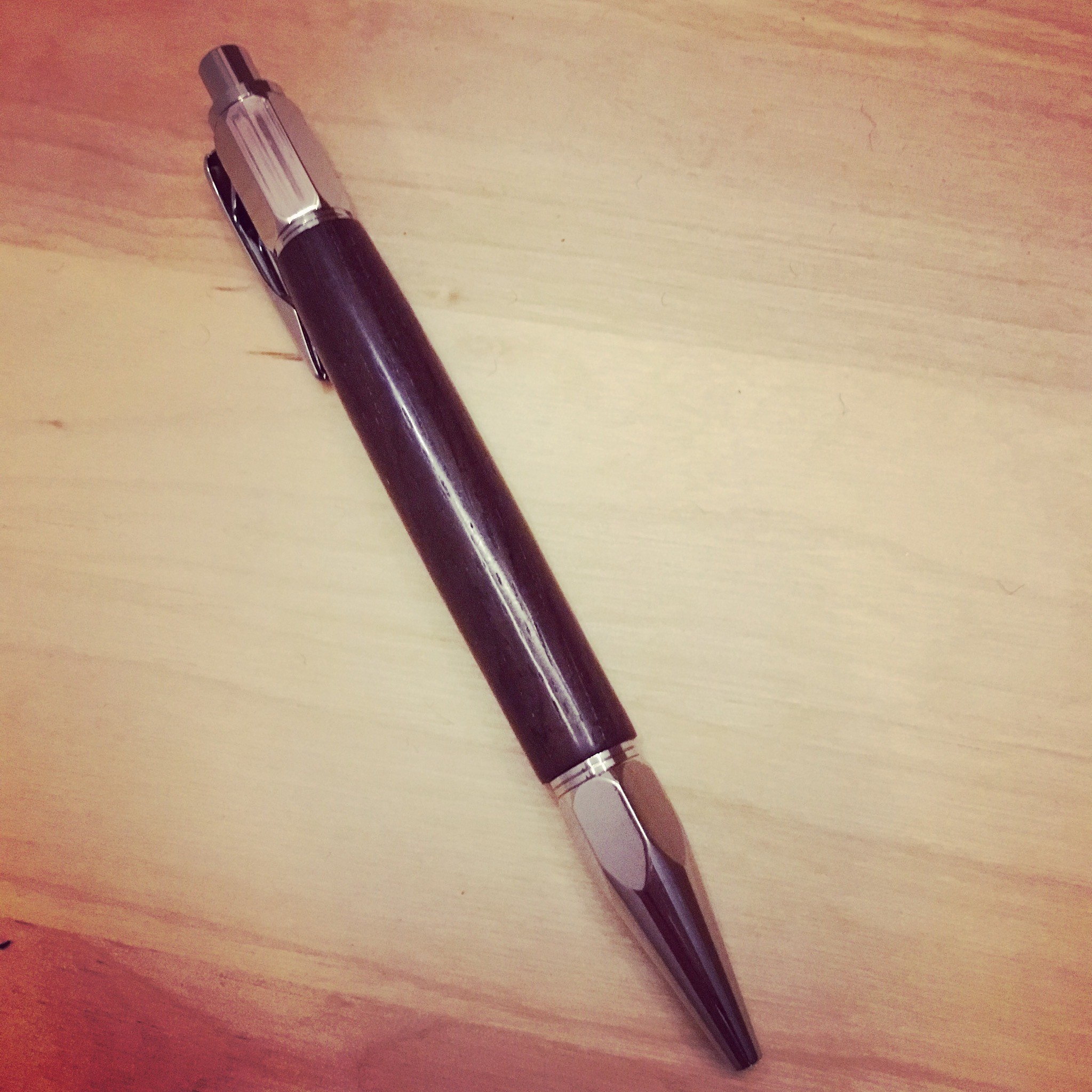 Todella tyylikas "muutteri"-kynäKeskiputki 9,5 mm, pituus 74 mmSen voi sorvata tavallisella kynäistukalla jossa on paksut holkit kartiomallisella päällä.