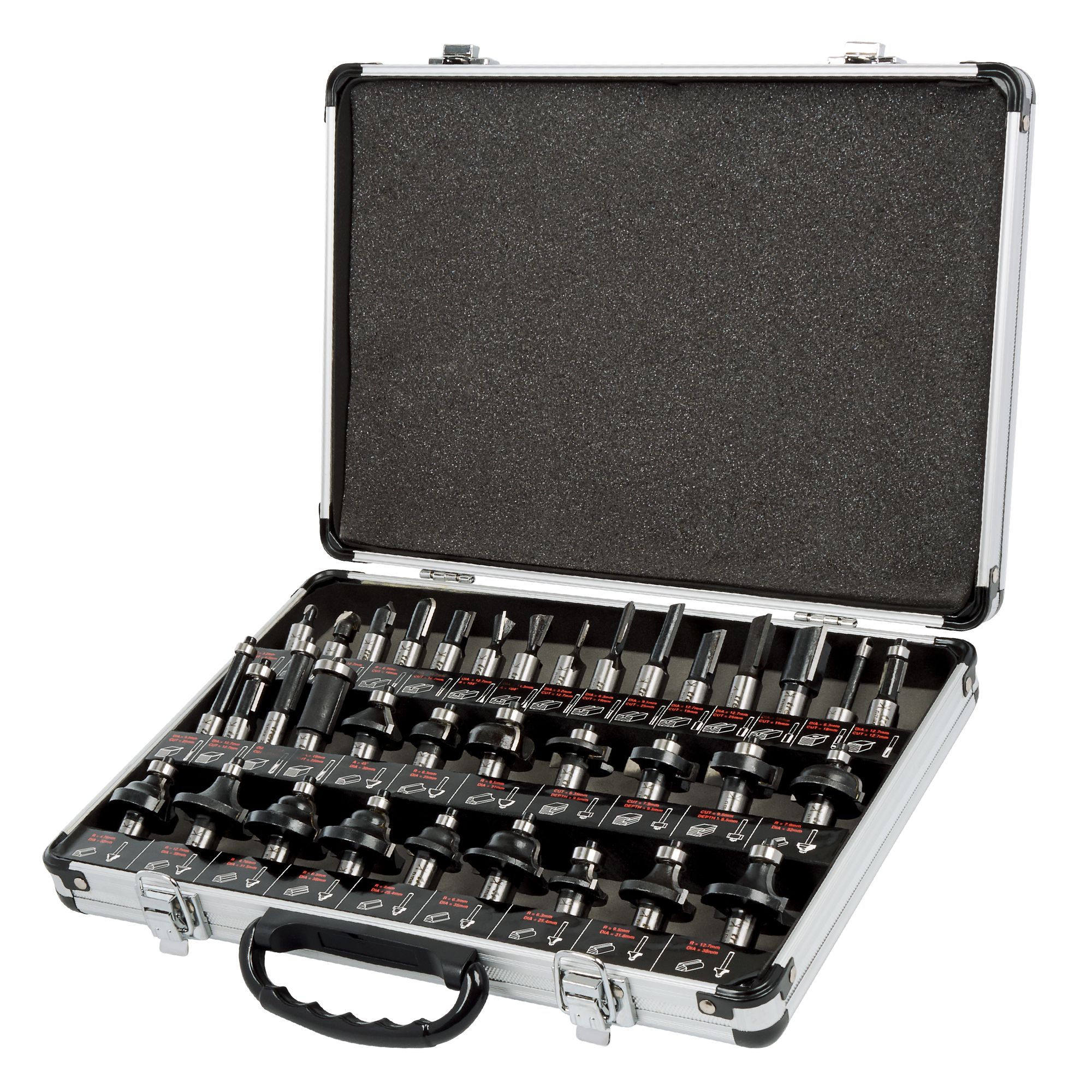 Tämä 35-osainen teräsarja sisältää valikoiman suosittuja volframikarbidikärjeisiä jyrsinteriä erilaisiin käyttötarkoituksiin.